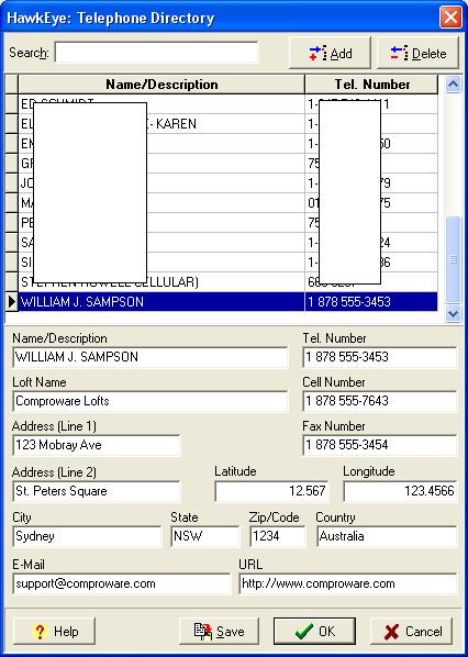 Hawkeye provides a phone database where you can keep all your fellow fancier's telephone numbers and important data.