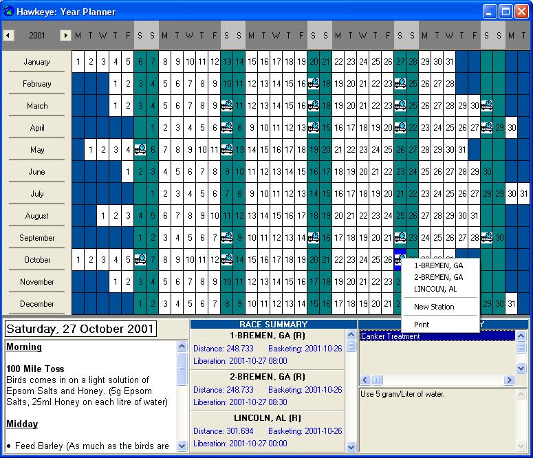 Hawkeye provides you with a year planner to review your race dates on the fly. A popup menu lets you add and edit race stations with the click of a button.